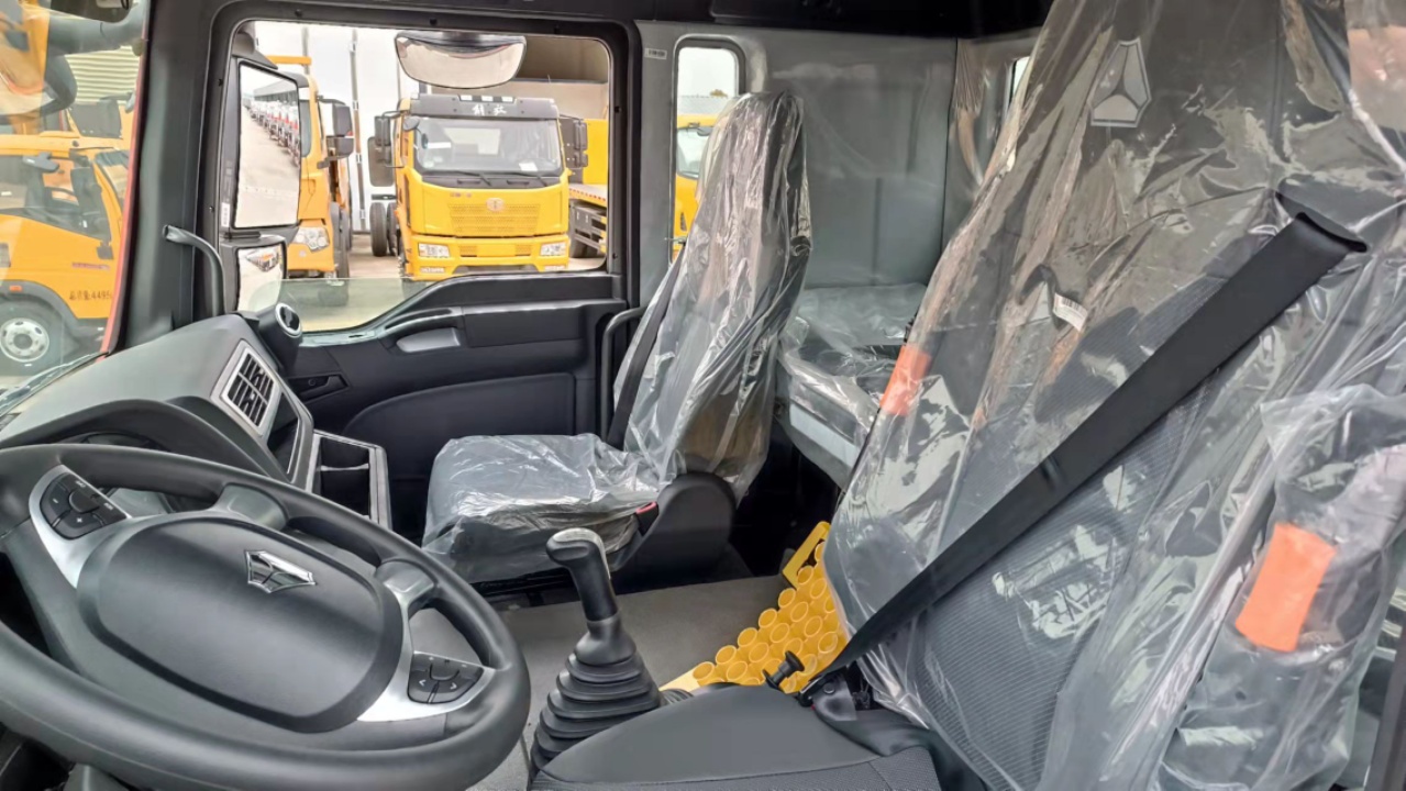 5G5-F駕駛室 ;MC07H.35-60發(fā)動(dòng)機(jī);HW13709XSTC2變速箱+HW70法蘭式取力器;VPD75D前軸(盤);MCY11BGS自調(diào)臂雙后橋(鼓);速比4.63;