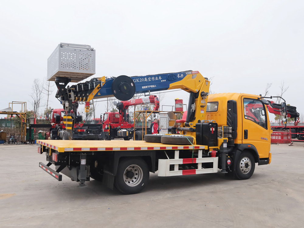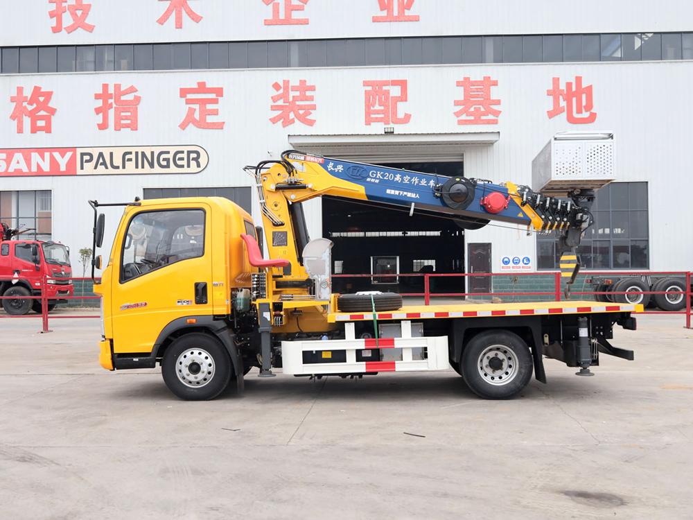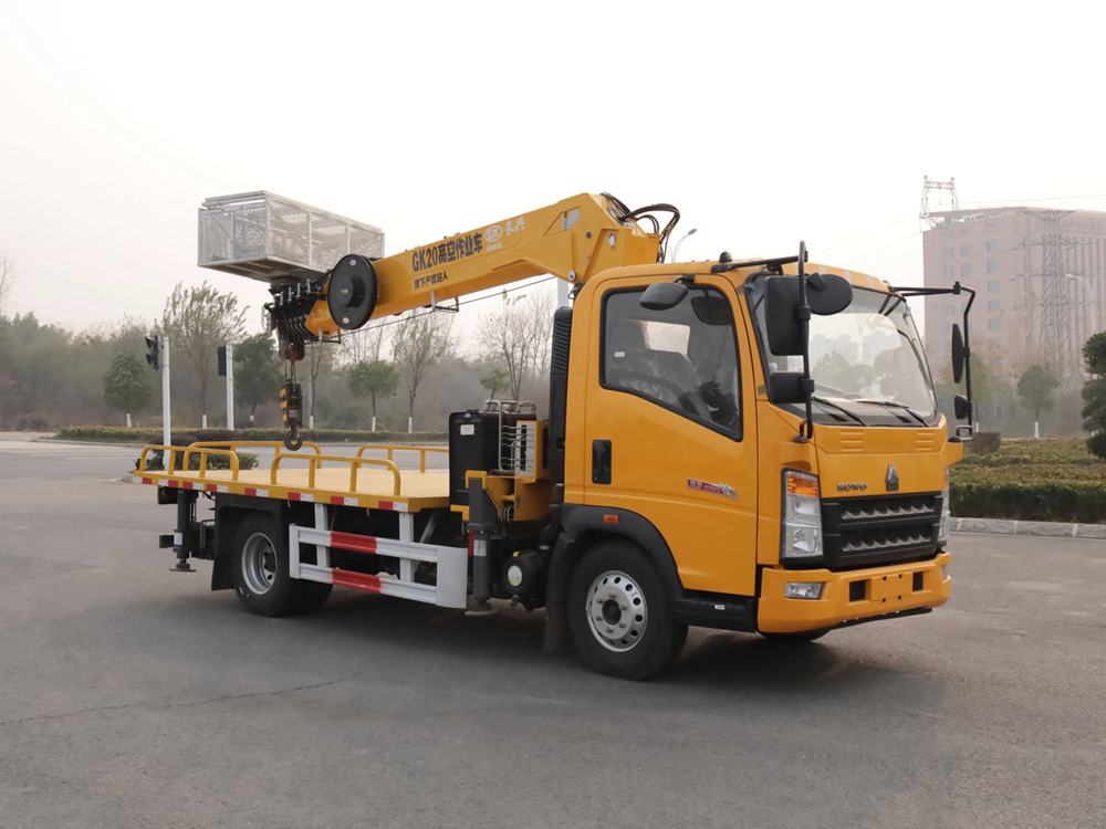 重汽豪沃單排上裝長興5噸直臂式吊機(帶高空作業(yè)功能)