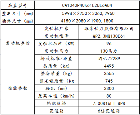 1、底盤配置 (CA1040P40K61L2BE6A84)