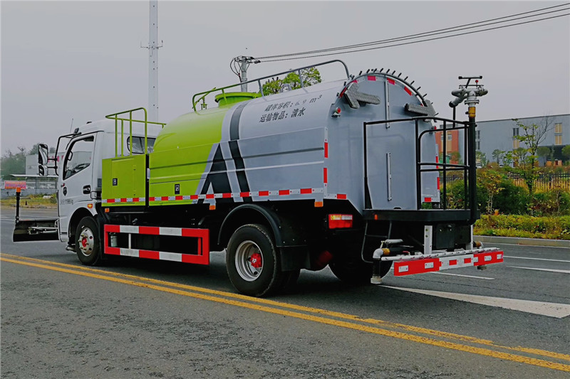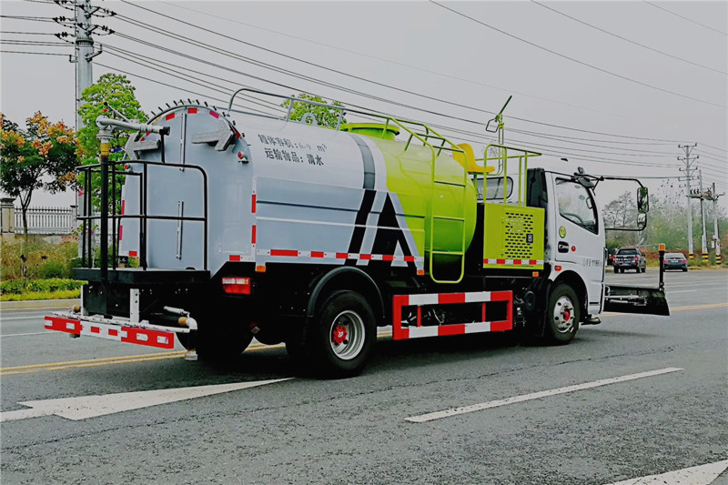 東風多利卡高壓清洗車是一種雙發(fā)動機、雙水泵清洗車,是在標準二類底盤的基礎上,加裝高壓沖洗系統(tǒng)、低壓沖洗系統(tǒng),由機械、液壓(氣路)、電器三部分合為一體的專用沖洗作業(yè)車。本車具有獨立的高、低壓兩套水路系統(tǒng),為清洗車工作提供壓力水源。其工作原理是:利用高壓水泵產生的高壓水,經(jīng)噴水架的高壓噴嘴噴出,利用高壓水流的動能,以高壓力、低流量的方式進行清洗,強力去污,高效節(jié)水,能將路面的陳舊污漬清洗干凈;或高壓水經(jīng)左(右)角噴噴出,清洗路緣、人行道及護欄隔離區(qū);使用高壓噴槍還可清洗路標、廣告牌、高架路等;噴霧系統(tǒng)具有強大的噴霧降塵、噴撒空氣消毒劑及調節(jié)空氣濕度功能。